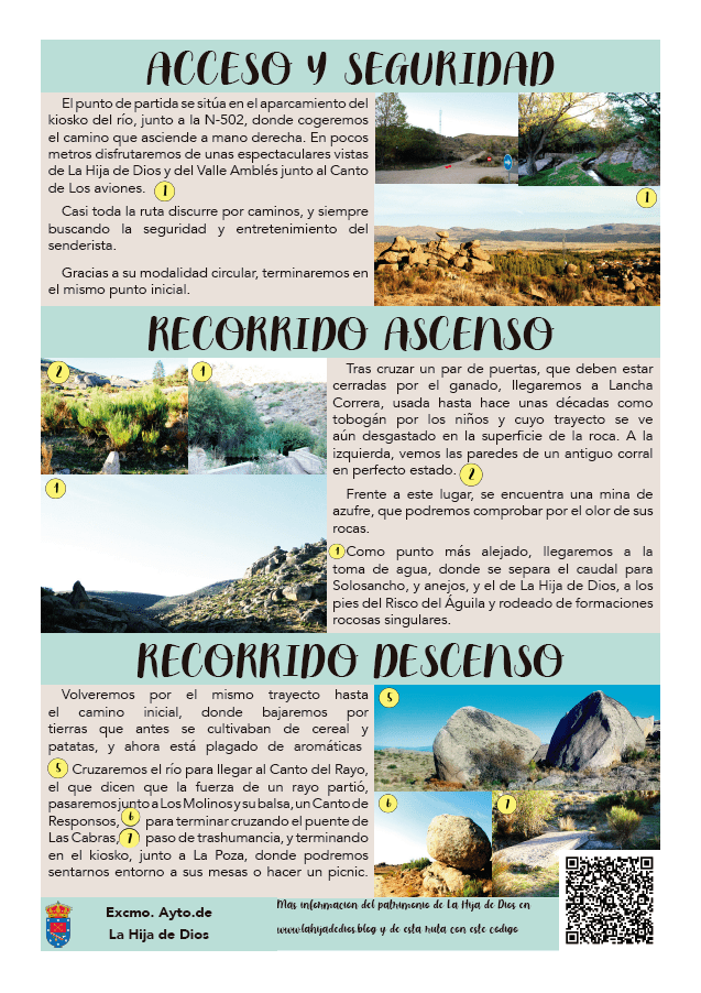 La primera de ellas es La Ruta de Los Sentidos, que recorre el cauce del río de Los Arroyuelos, y cuya información encontraréis en este folleto, que podéis descargar e imprimir, o simplemente consultar en vuestros dispositivos móviles: