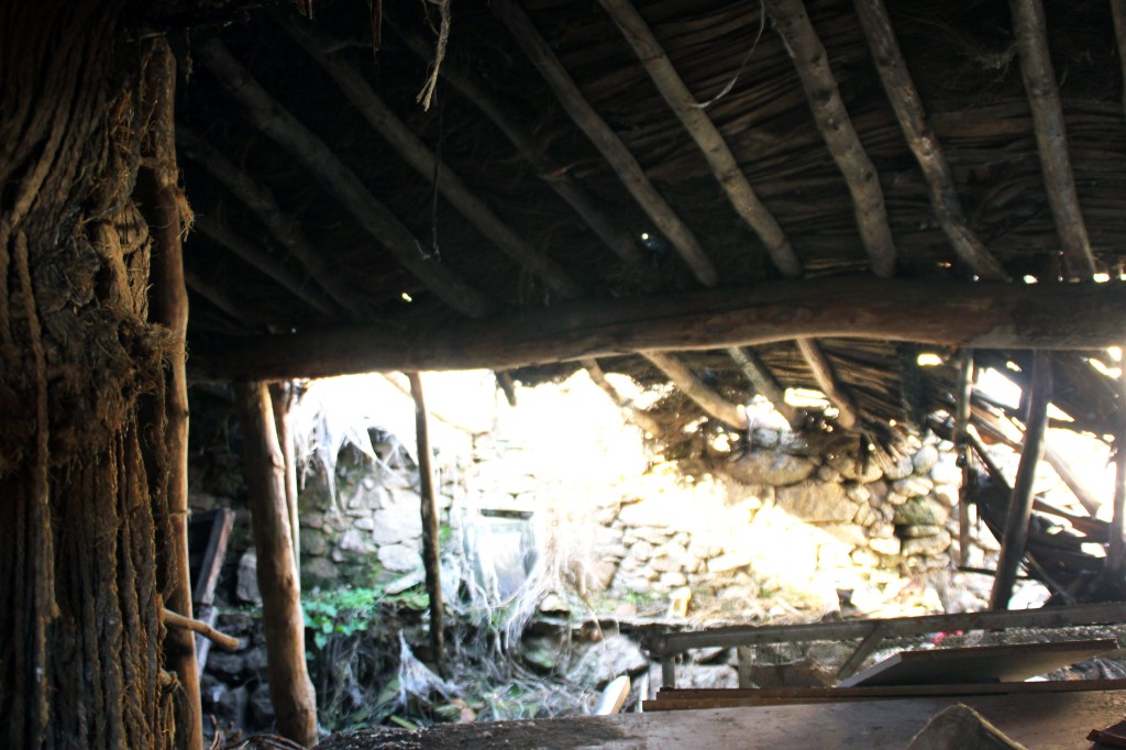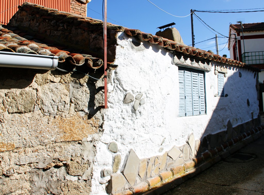 Pero toda la información que ha llegado a mis manos no tiene comparación con el testimonio que nuestra vecina Martina me ofreció: muchas de estas casas, las casas de piedra granítica más antiguas, están hechas a mano, talladas a mano, con mucho esfuerzo, tesón y habilidad. Nos contaba una mañana soleada de otoño, frente a su casa, que esta fue construida por su marido allá por los años 70, partiendo las rocas con cuñas. Metían las cuñas en las piedras, en lo que llaman «barranquitos», y «a porrazos» las rompían. Y luego ya, hacían la pared.